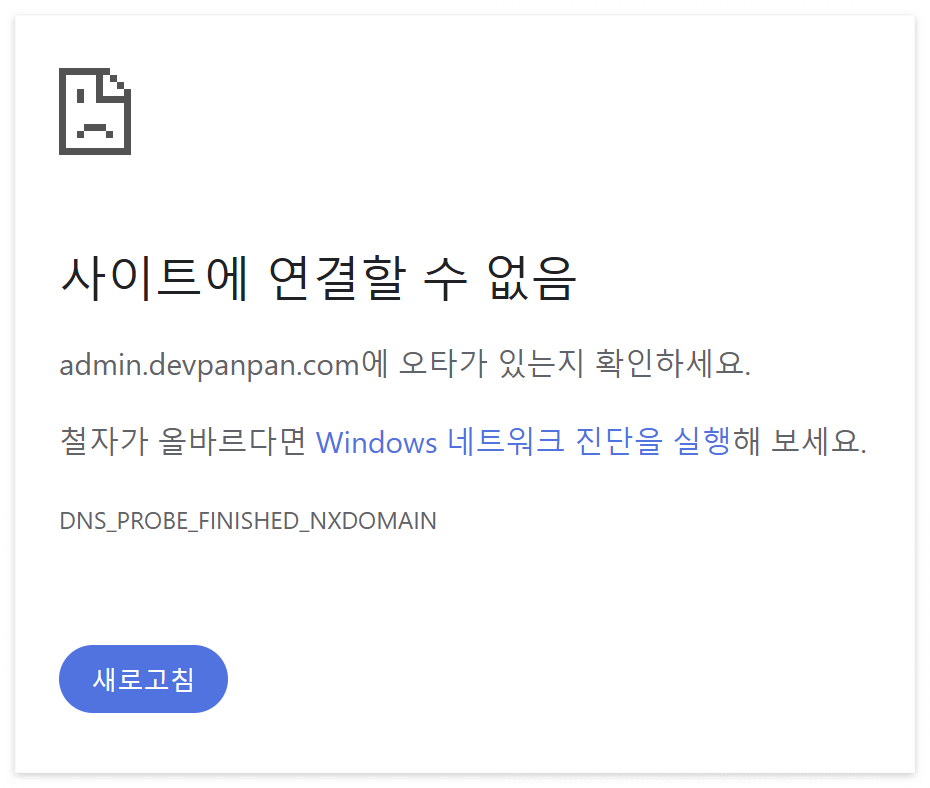 사이트에 연결할 수 없음 (DNS_PROBE_FINISIHED_NXDOMAIN)