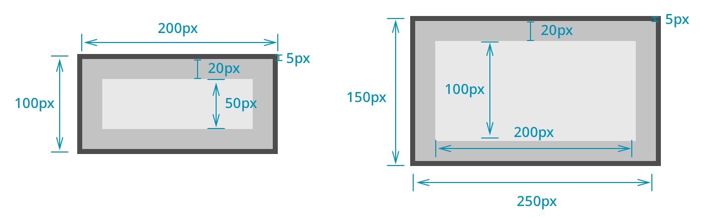 - border-box: 지정한 width, height에 padding 미포함 (왼쪽)
