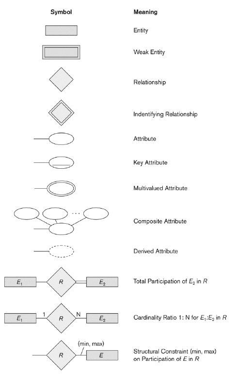 * Entity는 사각형로, Attribute는 (타)원으로, 그 중에서도 Key Attribute는 underline이 있으며, Relationship은 마름모로 나타낸다는 것이 가장 중요