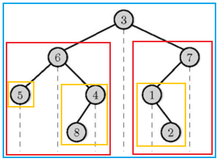 전체 트리의 루트는 3이지만, 루트 3을 기준으로 왼쪽/오른쪽으로 트리를 나누면루트가 6, 7인 두 개의 subtree가 생긴다.