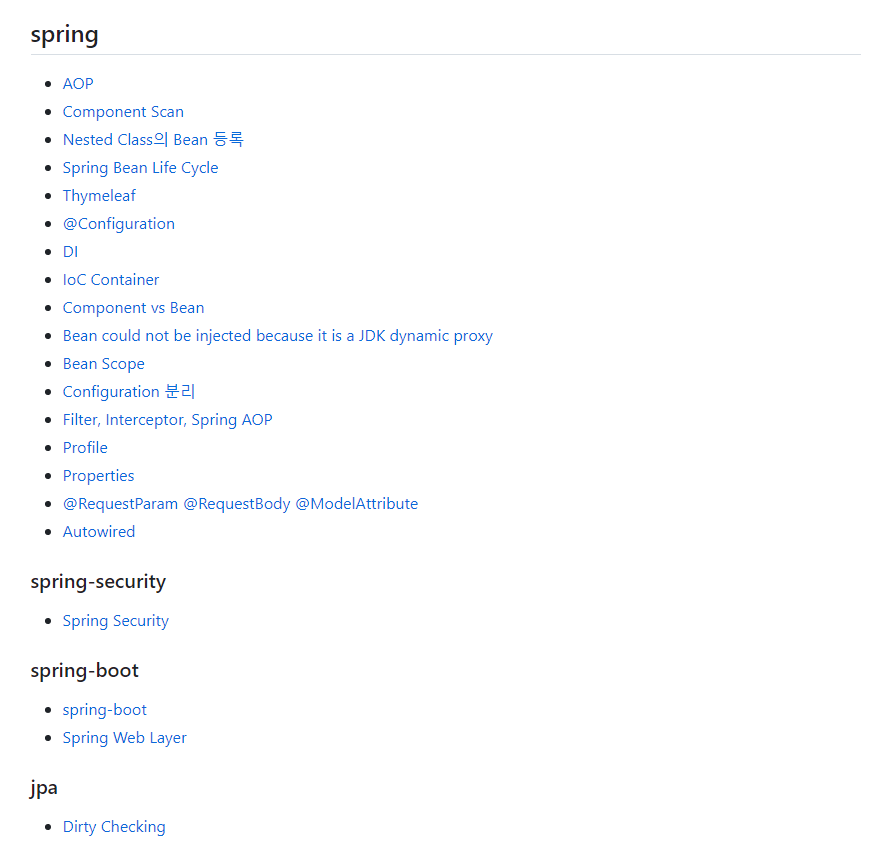 그래서 나는 Repository 내 README 파일에서 TIL의 전체 목차를 제공하기로 했다.